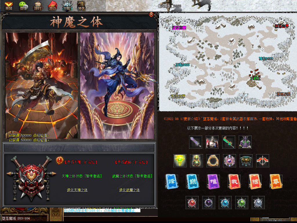 3.重写堕落魔域之后怪物所有爆率(因刷新怪物多了和时间缩短,此次只提高基础爆率的30%)!